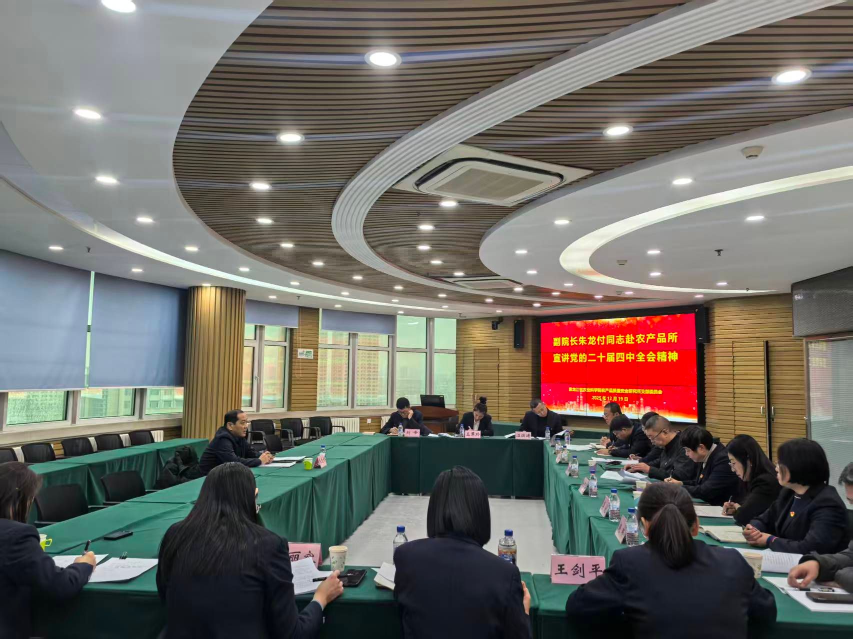 12 月 19 日上午,黑龙江省农业科学院党组成员、副院长朱龙付赴农产品所,开展党的二十届四中全会精神专题宣讲,同步检查实验室安全工作,并围绕 “十五五” 规划开展调研座谈。