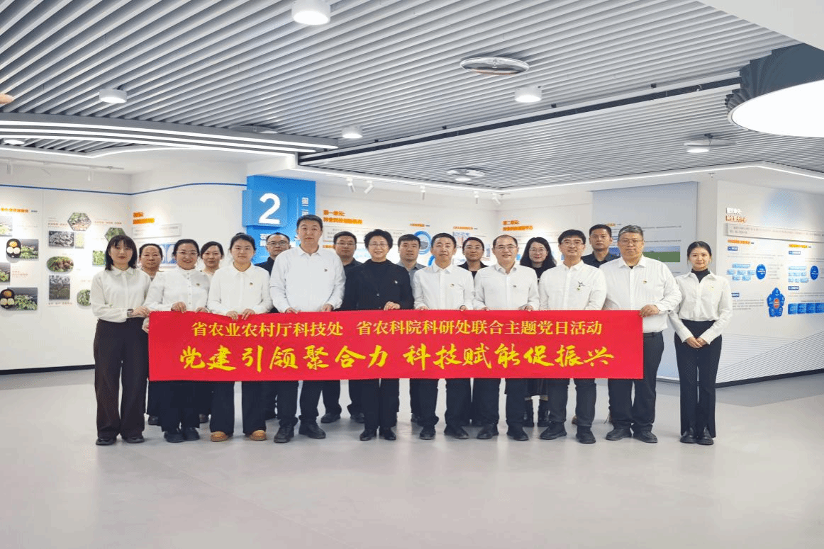 为深入推进党建与业务融合,强化农业科技协同创新,2月3日下午,省农业农村厅科技处党支部与省农科院科研处党支部赴黑龙江省种业创新成果展示和转化交易中心,联合开展“党建引领聚合力,科技赋能促振兴”主题党日活动。省农科院党组成员、副院长卢淑雯,省农业农村厅科技处处长李刚,省农科院科研处处长何鑫淼及两个支部全体党员参加活动。本次活动以“调研对接、协同研讨、凝聚共识”为主线,聚焦科研管理机制优化与成果转化落地,...