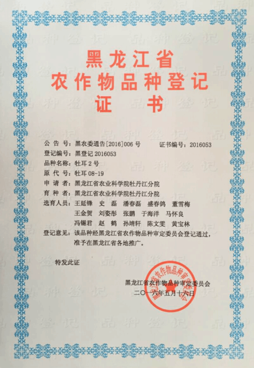 成果完成单位:黑龙江省农业科学院牡丹江分院