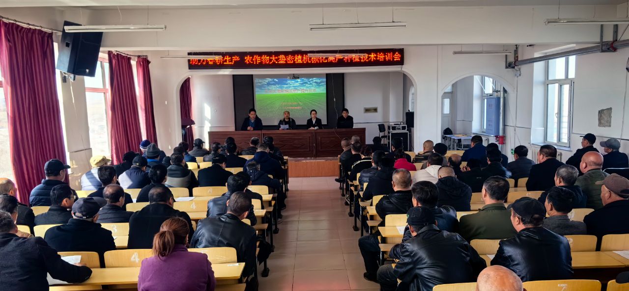 3月22日,省农机院齐齐哈尔分院副院长曹明璐带队赴甘南县中兴乡,开展“惠农科技培训班”,为当地农业技术骨干、种植大户等50余人讲解粮食作物大垄密植机械化高产种植技术。