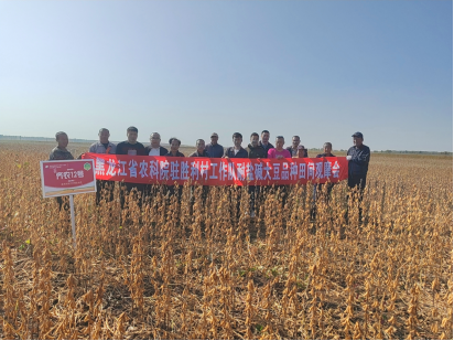 在八里川耐盐碱大豆示范田,工作队重点展示了2024年鉴选出的齐农12 、黑农531、黑农91、牡豆56和克豆80等五个耐盐碱大豆品种。9月28日,省农科院驻胜利村工作队组织种植大户实地观摩了耐盐碱示范基地。经初步测产,黑农531产量亩产468.69斤/亩,齐农12产量亩产421.09斤/亩,远超当地大豆产量。种植大户认真聆听、观察大豆的生长情况,纷纷询问种植技术和市场前景,并对其他大豆品种的耐盐碱表现高度认可。通过本次观摩会帮助种植户深入认识优质大豆品种。