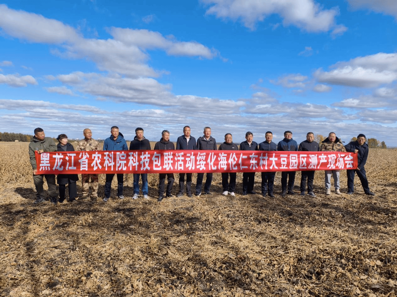10月8日,黑龙江省农科院党组成员、省农机院党委书记、院长、绥化市科技包联服务团责任领导张燕梁带领服务团成员,特邀5名领域专家,赴绥化海伦市东风镇仁东村大豆“打擂”示范田开展实收测产。海伦市副市长杨会玉及当地农业农村局、农业技术推广中心、仁东村村委会相关人员陪同。