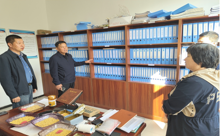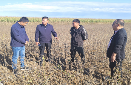 在八里川耐盐碱大豆示范基地, 焦院长一行查看了黑农531、黑农91、齐农12等品种的产量表现, 要求工作队对胜利村200亩以上的种植大户进行摸底调查,明年要对种植大户进行持续跟踪帮扶,通过典型带动模式,引导和培养出更多懂技术、会管理、善经营的优秀青年,不断增强胜利村产业振兴的内生动力。