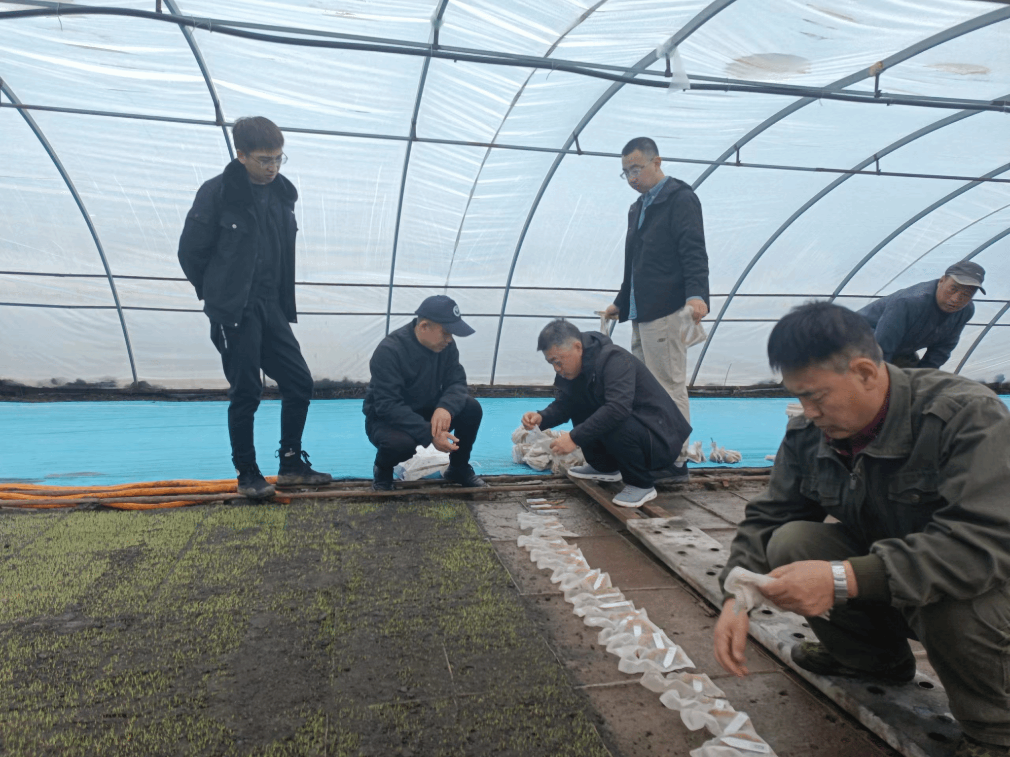 在虎林市虎林镇智谷农业服务有限公司、虎头镇半站村虎林市粮鑫稻佳水稻种植专业合作社和宝东镇平原村等水稻育苗基地,服务团团长带领科技人员走进水稻育苗现场,了解育苗大棚安全性、保温效果,认真查看棚内温湿度、秧苗整体长势,结合秧苗生长情况现场为水稻种植户详细讲解了水稻秧苗的科学控温、浇水、施肥、防病、防冻等关键技术,为培育壮秧保障科技增粮打好基础。