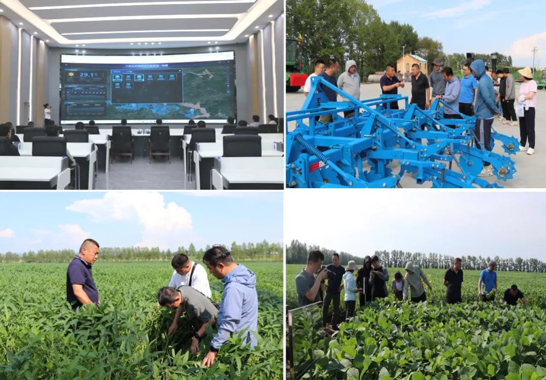 指导组先后来到核心种源基地、大豆高产示范基地,标准化农具场、智慧农业指挥中心等地,详细了解了作物品种、长势、农技措施、病虫害发生等情况,就作物当前长势,结合最新的科研成果和实践经验,对作物后期管理提出了针对性指导意见。