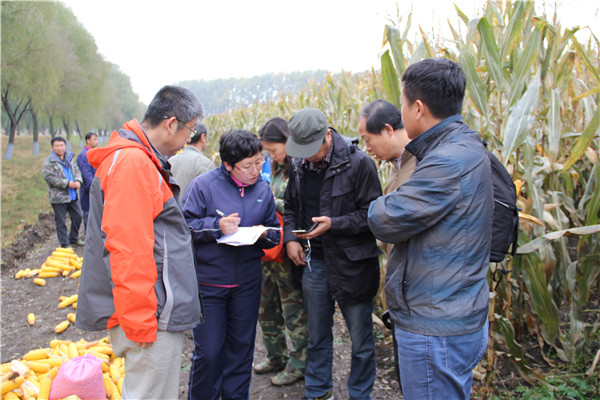 十月的黑土地上秋意正浓,处处洋溢着丰收的喜悦。在黑龙江省科技厅的组织下,10月9日由中国农科院李少昆研究员、吉林省农科院王立春研究员、中国科学院东北地理与农业生态研究所王建国研究员、黑龙江省农业技术推广站张相英研究员、我院王俊河研究员五位专家组成的测产专家组,对由我院主持的“粮丰工程”项目在双城市朝阳乡的玉米高产攻关田进行了实地测产。专家组参照科技部粮食丰产科技工程三大作物产量验收办法,科学选点、实事求是,在折合14%标准含水率的前提下,测得攻关田百亩片平均亩产达到了1129.1公斤。该产量实现了寒地早熟玉米区玉米单产的新突破,更是培肥地力、新品种应用、机械深松、增加密度、防病防虫等技术的综合组装运用的结果。