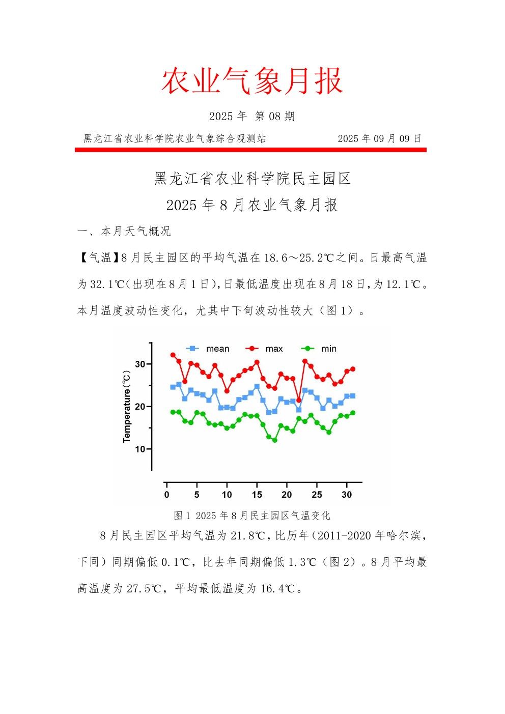 上一篇: 黑龙江省农业科学院民主园区2025年9月农业气象月报