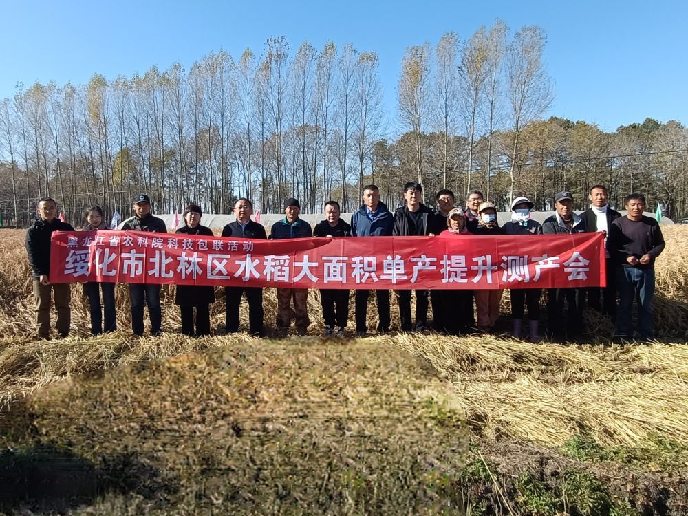2025年,绥化市科技包联服务团在绥化市北林区秦家镇秦家村设立水稻大面积单产提升攻关地块。将水稻旱育稀植栽培技术、水稻“三化一管”超高产栽培技术、水稻提质减损技术等多项技术与优良品种绥粳309集成应用,取得良好的示范效果。