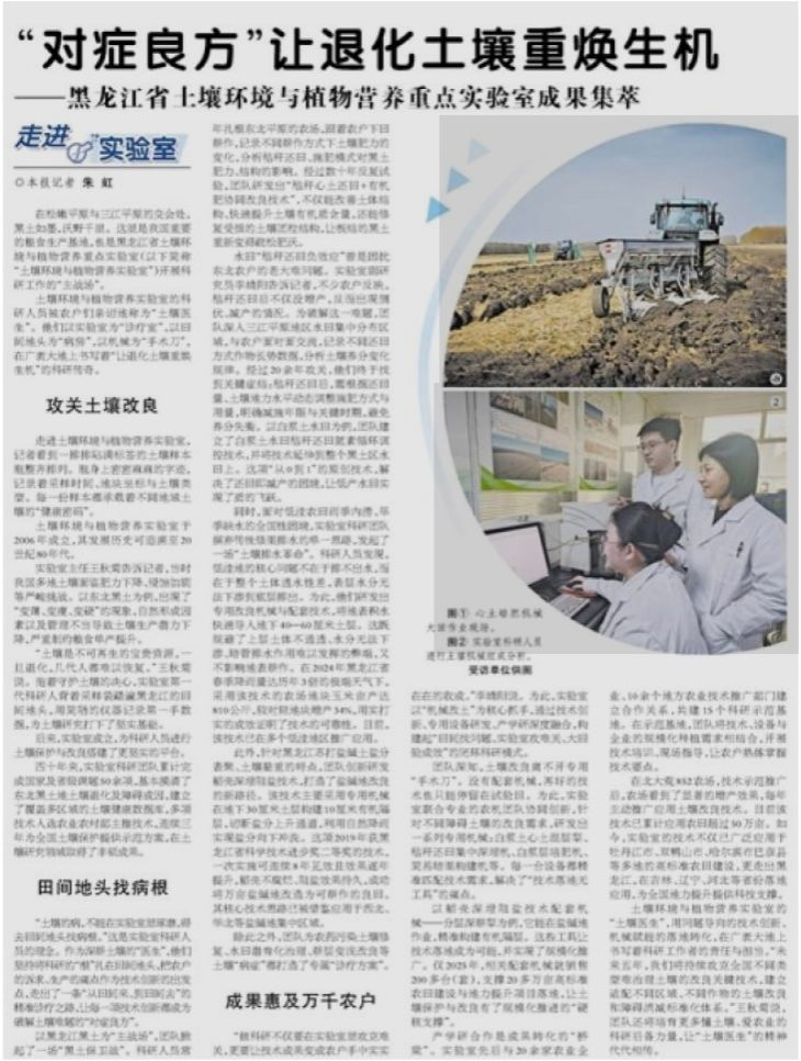 土壤环境与植物营养实验室的科研人员被农户们亲切地称为“土壤医生”。他们以实验室为“诊疗室”,以田间地头为“病房”,以机械为“手术刀”,在广袤大地上书写着“让退化土壤重焕生机”的科研传奇。